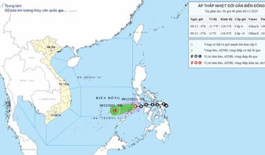 Theo Trung tâm Dự báo khí tượng thủy văn quốc gia, đến 7h sáng nay (8/12), tâm áp thấp nhiệt đới trên vùng ven biển phía Đông đảo Pa-La-Oan (Philippines). Sức gió mạnh nhất vùng gần tâm đạt cấp 6 (39-49km/h), giật cấp 8, di chuyển theo hướng Tây với tốc độ khoảng 15-20km/h.