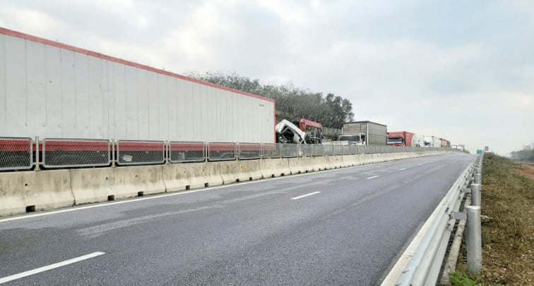 Vụ tai nạn khiến tuyến cao tốc Bắc - Nam đoạn Bùng - Vạn Ninh bị ùn tắc. Ảnh: CTV